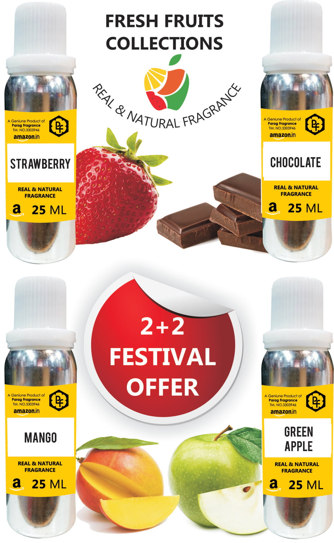 FRUIT COLLECTION STRABERRY CHOCLATE MANGO AND GREEN APPLE 25 ML EACH