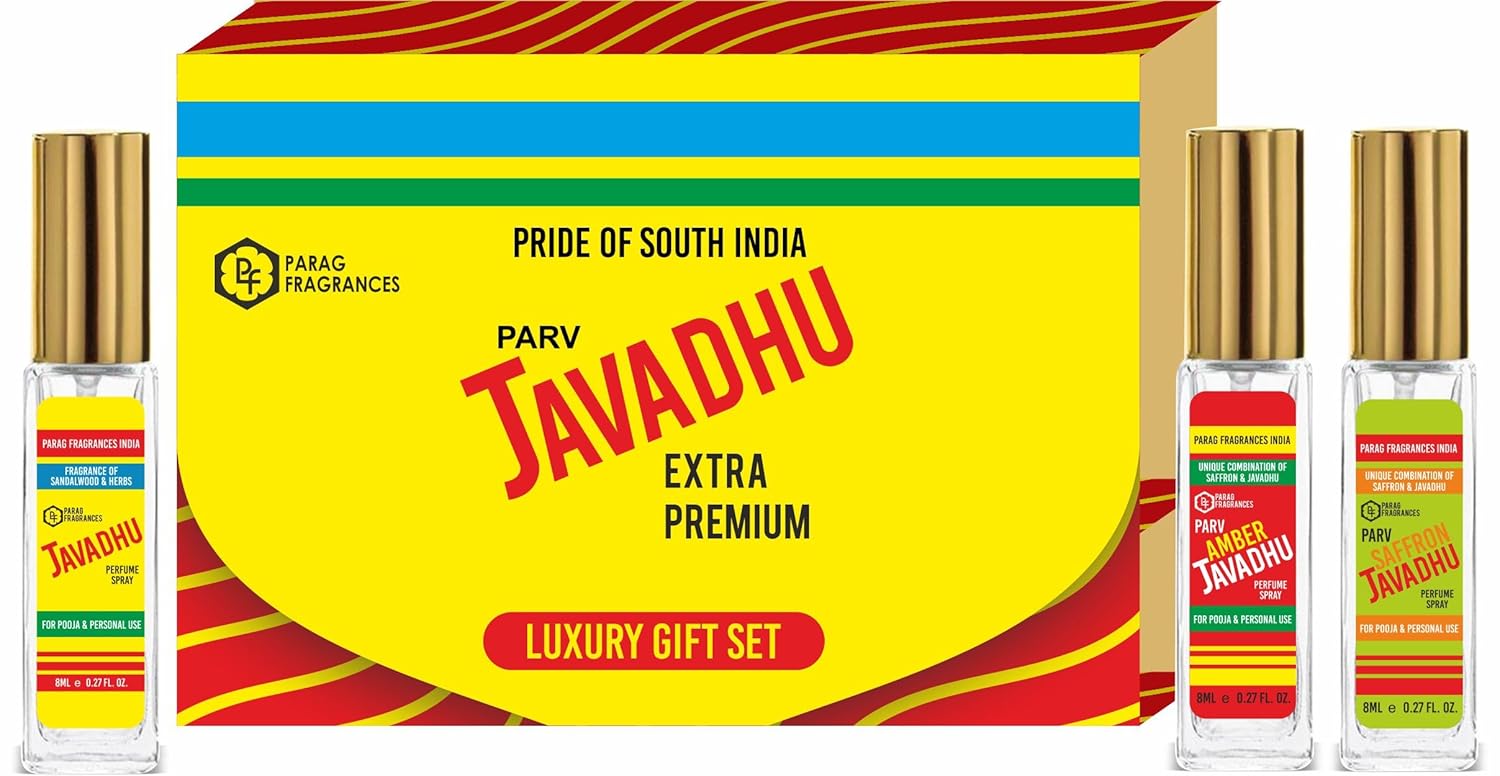 Parag Fragrances Javadhu Long Lasting Perfume Gift Set 8ml x 3 pc Total 24ml Perfume Spray / Natural, Amber & Saffron Javadhu Perfume Spray